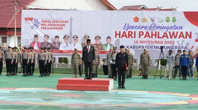 PURUK CAHU – Dalam rangka Peringatan Hari Pahlawan, Bupati Murung Raya (Mura), Heriyus memimpin ziarah ke Taman Makam Pahlawan di Danau Usung, Senin (10/11/2025).