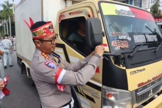 Maknai HUT RI ke-80, Ditlantas Polda Kalteng Bagikan 1.000 Bendera Merah Putih