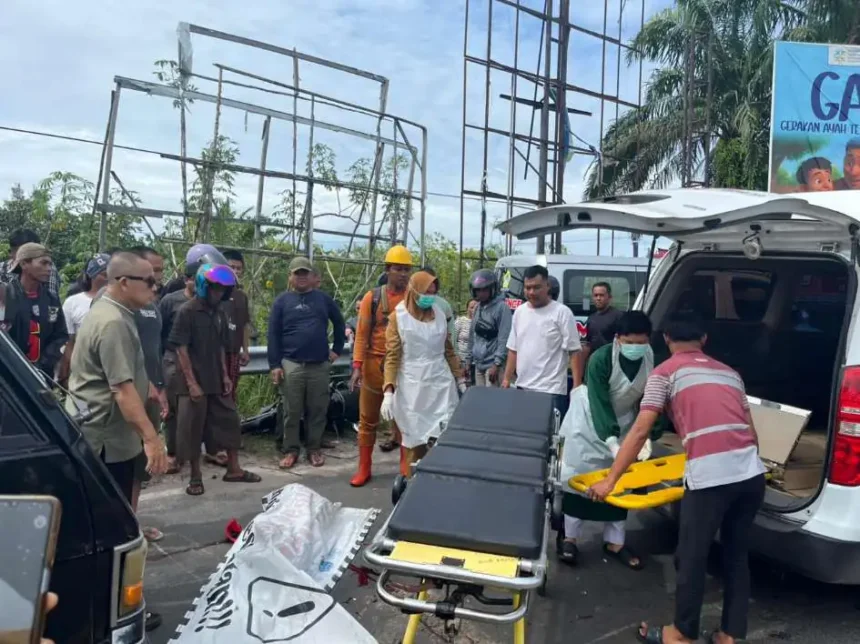 PALANGKARAYA -Kecelakaan lalu lintas terjadi di tikungan S Jalan Mahir Mahar, Kelurahan Kalampangan, Kecamatan Sabangau, Kota Palangka Raya, Senin (5/1/2026). Peristiwa tersebut melibatkan satu unit mobil pikap dan satu sepeda motor yang datang dari arah berlawanan.