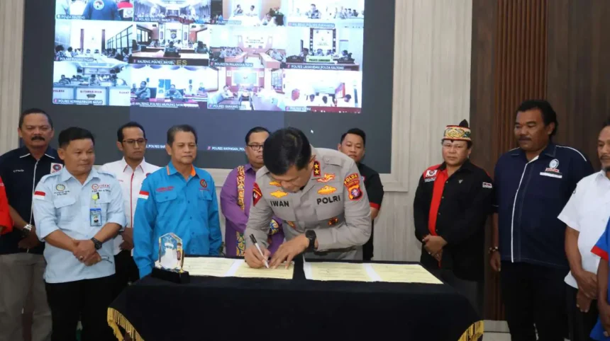 Kerjasama ini ditandai dengan penandatanganan nota kesepahaman (MoU) oleh Kapolda Kalteng Irjen Pol Iwan Kurniawan, bersama Ketua PD FSP Parekraf KSPSI Kalteng Adi Abdian Noor, di Lobi Mapolda setempat, Jl. Tjilik Riwut Km.1, Kota Palangka Raya, Senin (9/03/2025).